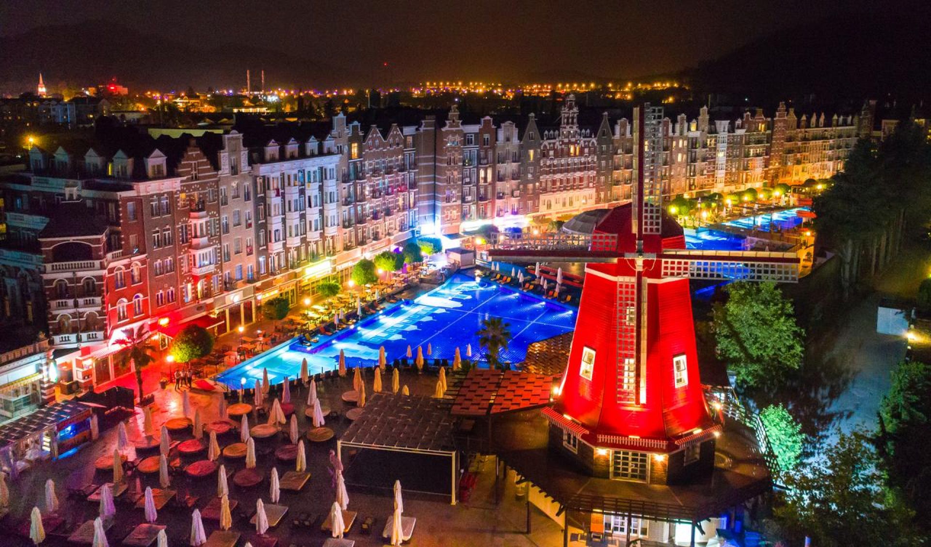 3 ресторанта, 7 бара, кафене, сладкарница, открит и закрит басейн, 2 водни пързалки, СПА център, конферентна зала