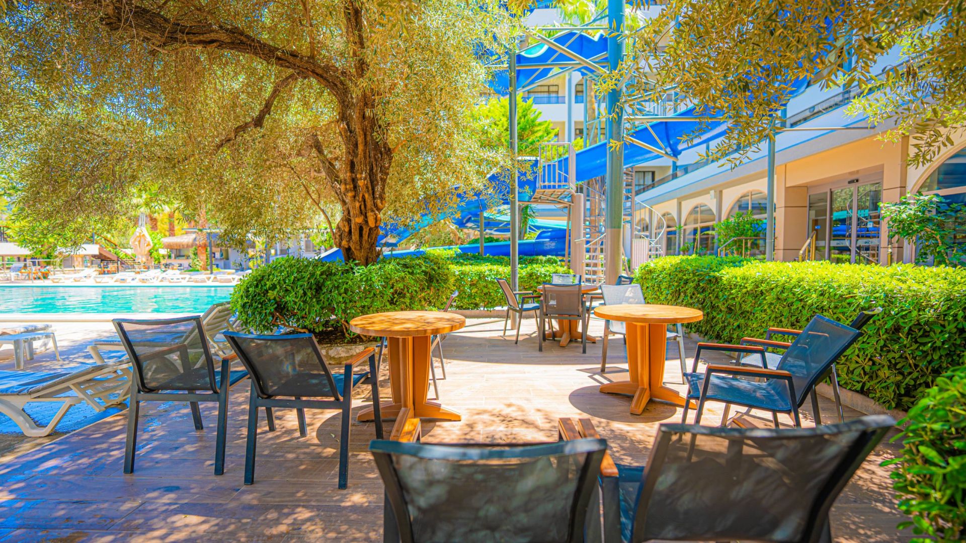 Основен ресторант, а - ла карт ресторант, снек бар, бар на плажа, открит басейн, 2 водни пързалки, Спа център.
