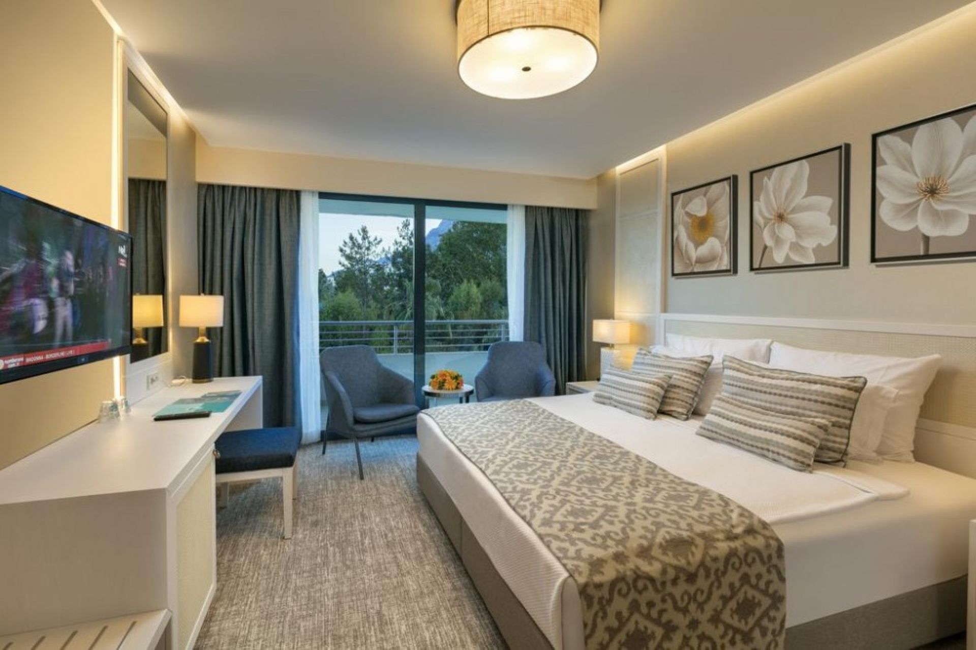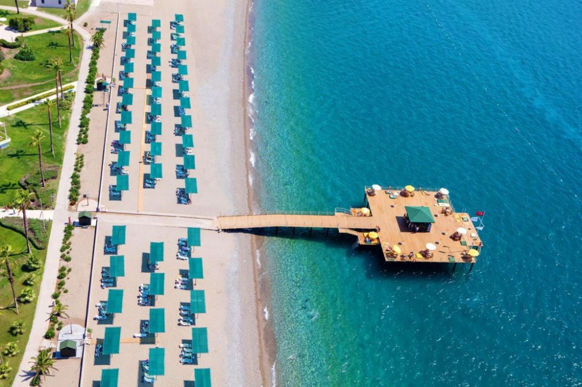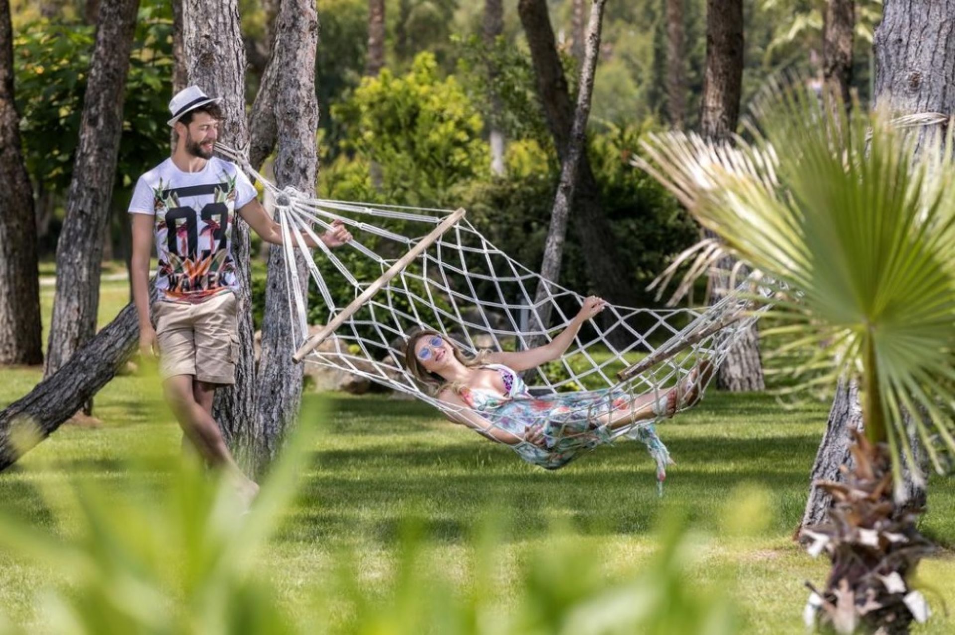Основен ресторант, 2 а - ла - карт ресторанта (с предварителна резервация - срещу заплащане), 9 бара, 2 открити и 1 закрит басейн, водни пързалки, тенис кортове, баскетболно игрище, мини футбол, дискотека. За децата: Детски басейни – открит и закрит, мини клуб (4-7 г.), джуниър клуб (8-12 г.), детско кино, детска площадка, детски секция в основния ресторант, анимация. Безплатни услуги: Сауна, парна баня, турска баня, фитнес, аеробика, водна гимнастика, стрелба с лък, уиндсърфинг (с лиценз), тенис на маса, плажен волейбол, мини голф, тенис на корт, анимация, WiFi (в лоби). Платени услуги: Масаж, СПА процедури, фризьор, лекар, химическо чистене, боулинг, билярд, електронни игри, рент-а-кар, наем на велосипеди, спортна/тенис екипировка, осветление за тенис корт, моторни водни спортове, бизнес център. ПЛАЖ: Собствен, чакълест плаж. Чадъри, шезлонги, матраци, плажни кърпи на плажа и при басейна - безплатни.
