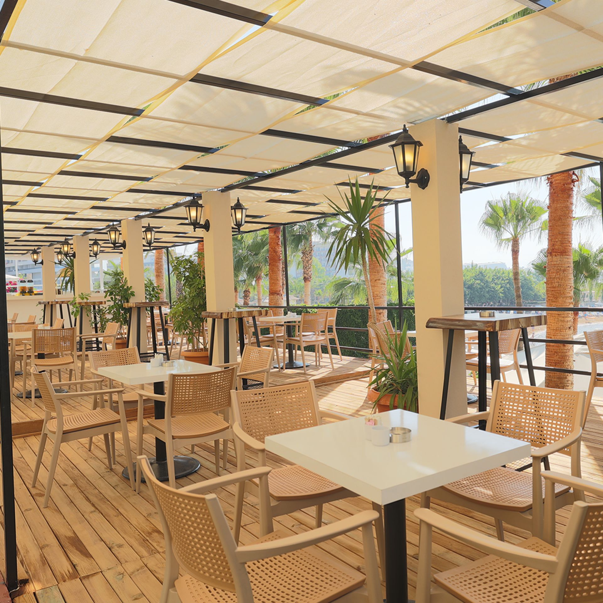 Основен ресторант, 1 а-ла-карт ресторанта (1 безплатно посещение при минимум 7 нощувки, с предварителна резервация), 1 снек ресторант, сладкарница, 3 бара, 2 открити басейна, 4 водни пързалки, СПА център, магазини, паркинг.