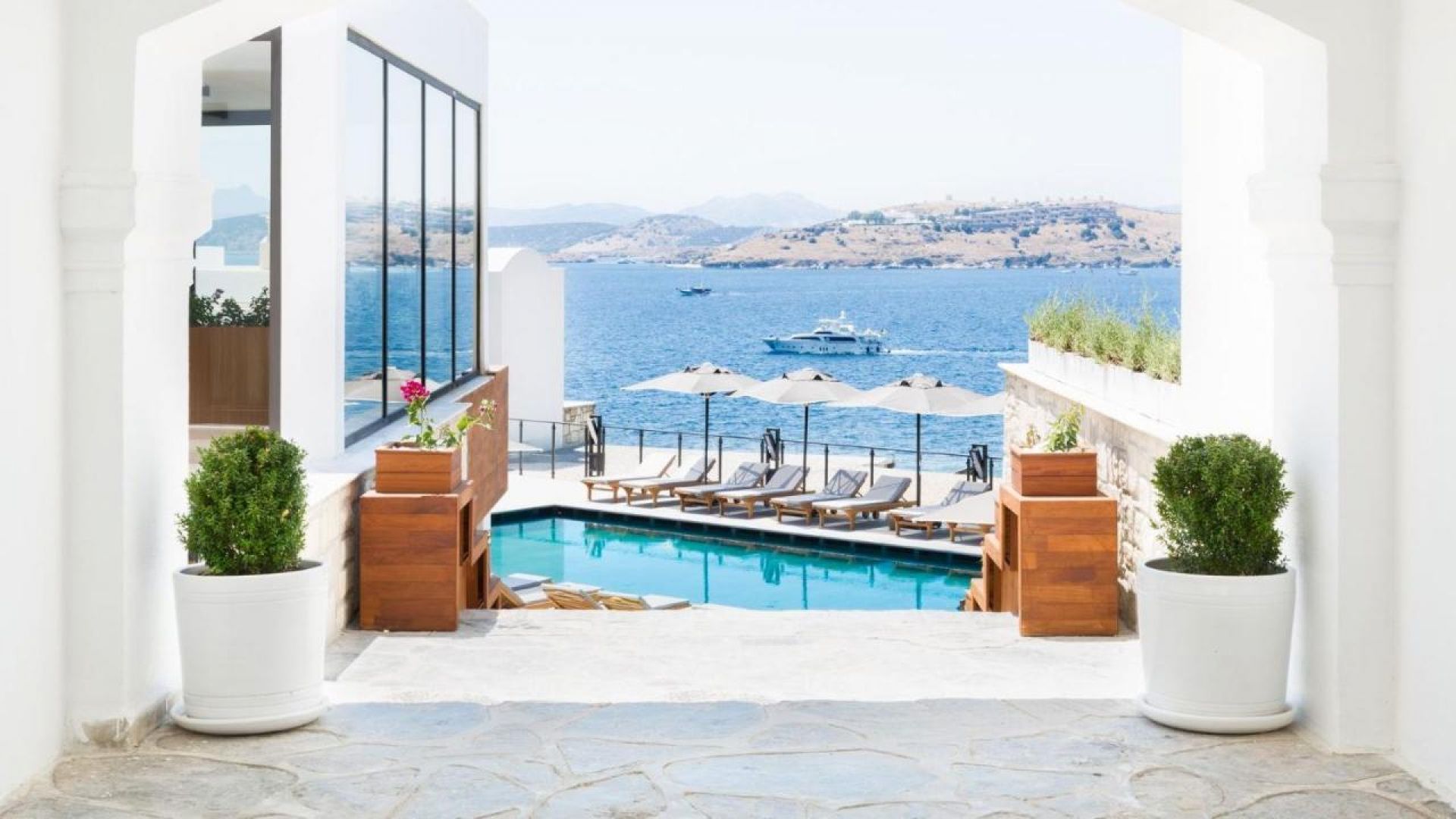 Намира се на 35 км от летище Бодрум, на 2 км от центъра на Бодрум, на 150 м от брега на морето, на обща площ от 7 245 м². Реновиран 2015 г.