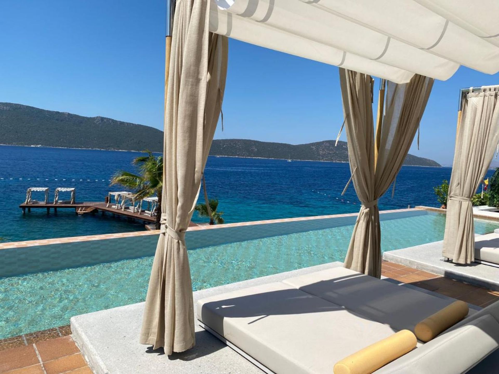 Хотелът разполага с 24 Deluxe Rooms и 10 Suites, всички с гледка към морето: 14 Deluxe Garden Sea View (35 m², с директен достъп до инфинити басейн и шезлонг), 10 Deluxe Balcony Sea View Room (35 m²), Deluxe Beachfront Room (50 m², с директен достъп до плажа и балкон), 1 One Bedroom Beachfront Suite (70 m², състои се от спалня, трапезария и баня с директен достъп до плажа), 1 Two Bedroom Beachfront Suite (75 m², състои се от 2 спални с едно двойно легло и две единични легла, трапезария, 2 бани, тераса с директен достъп до плажа), 2 Junior Suite (90 m², състои се от спалня, гардеробна и тераса с шезлонги), 1 Bodrum Suite (100 m², състои се от трапезария с кухня, спалня, гардеробна и две бани), 3 Jacuzzi Suite (80 - 110 m², състои се от спалня, трапезария, тоалетна, гардеробна, баня и джакузи на терасата), 1 Pool Suite (130 m², състои се от трапезария, 2 спални и 3 бани, има собствен басейн и зона за слънчеви бани), 1 Casa Nonna Suite (състои се от две отделни помещения: Bodrum Suite и Jacuzzi Suite, свързани с врата; общо две спални, четири бани с тоалетни и две дневни).