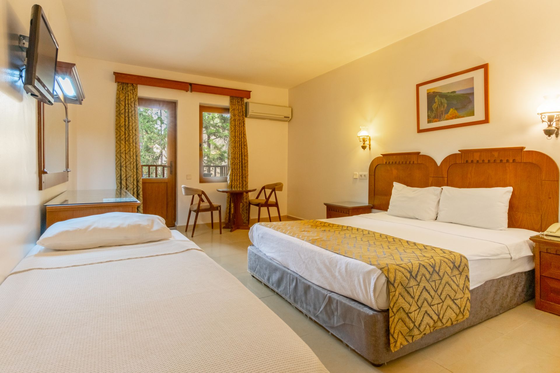 Всички стаи са оборудвани с климатик, телевизор, телефон, баня с душ, сешоар, сейф (платен).