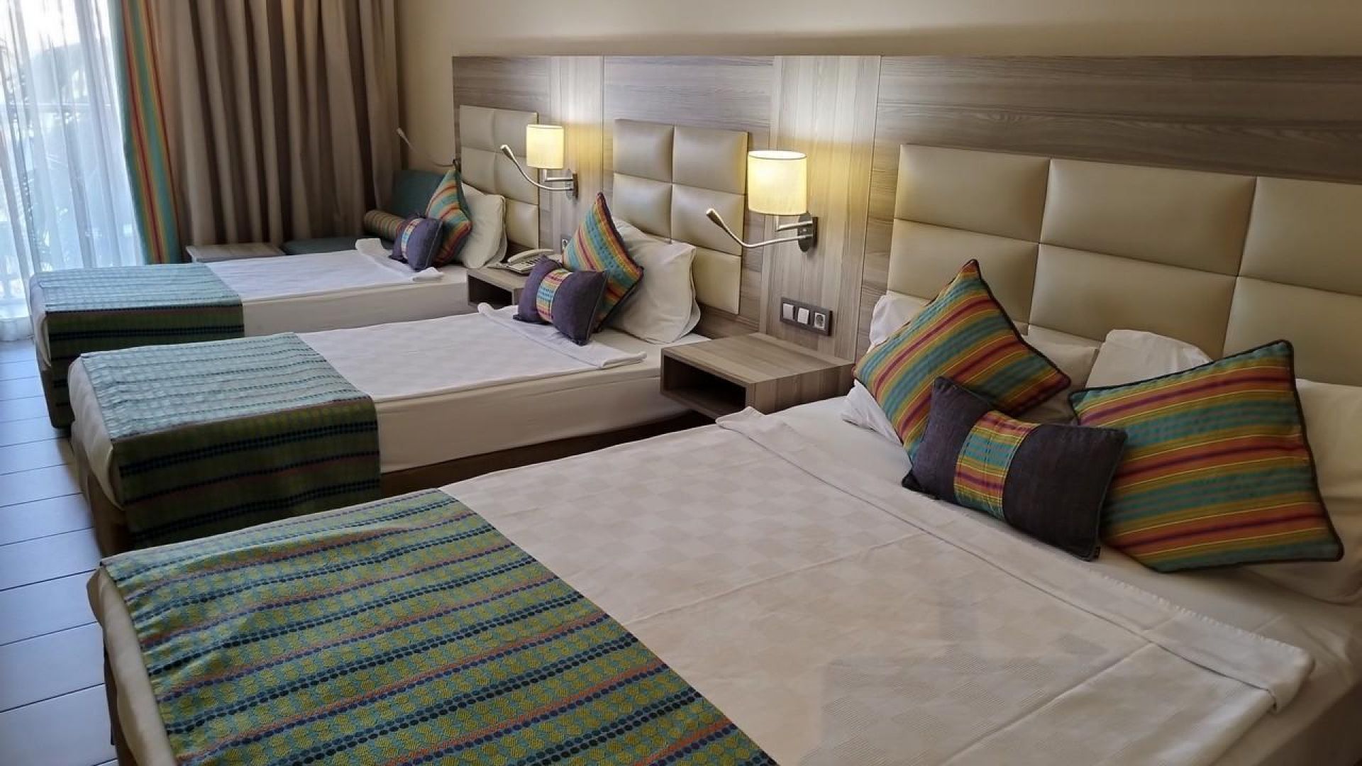 Всички стаи са с балкон, индивидуален климатик, телевизор, баня с душ, сешоар, минибар с безплатно ежедневно презареждан с вода и безалкохолни напитки, сейф (безплатно), балкон, безжичен интернет (срещу заплащане - 1 EUR /ден).