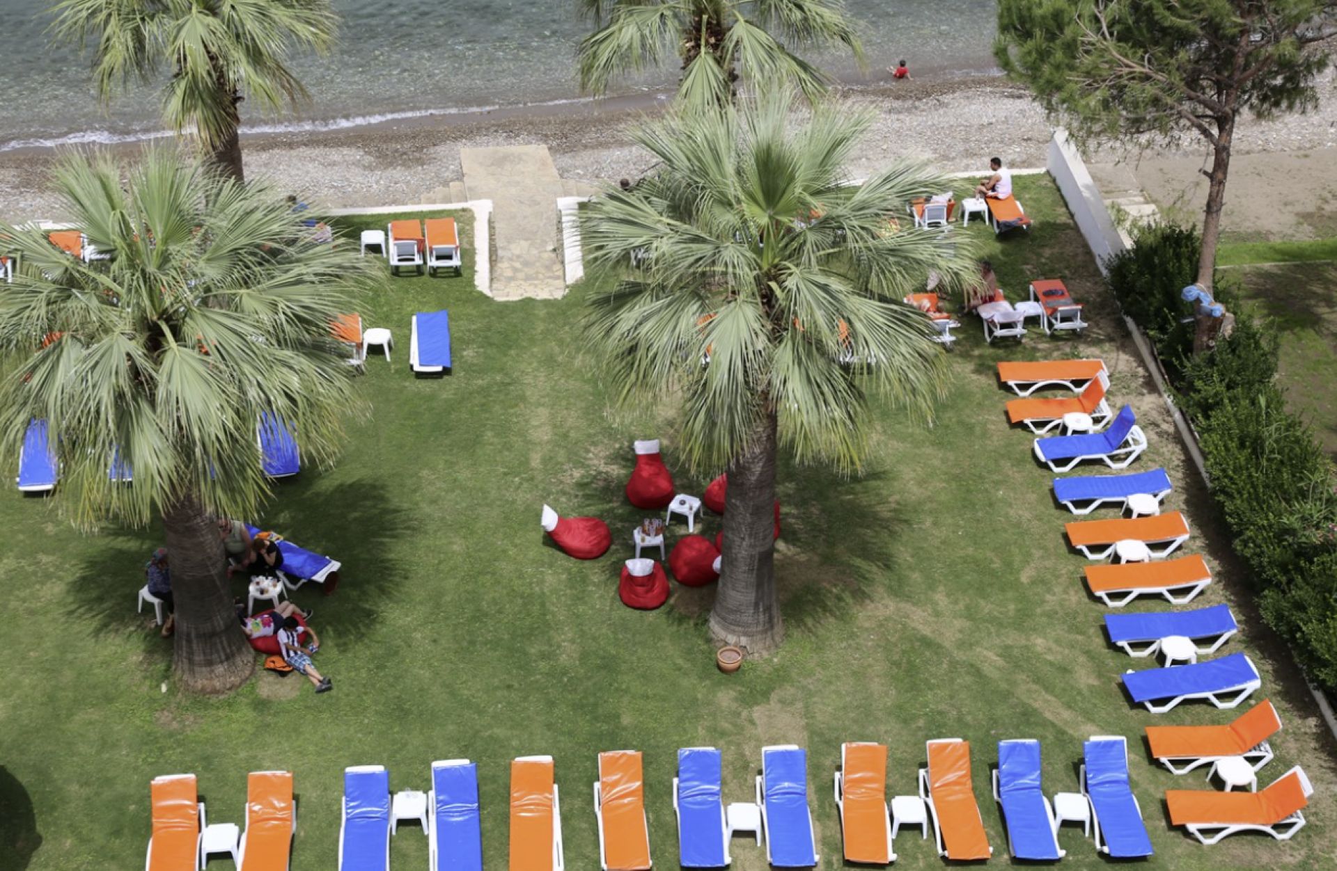 Пясъчно, чакълест. Чадъри и шезлонги на басейна - безплатно.